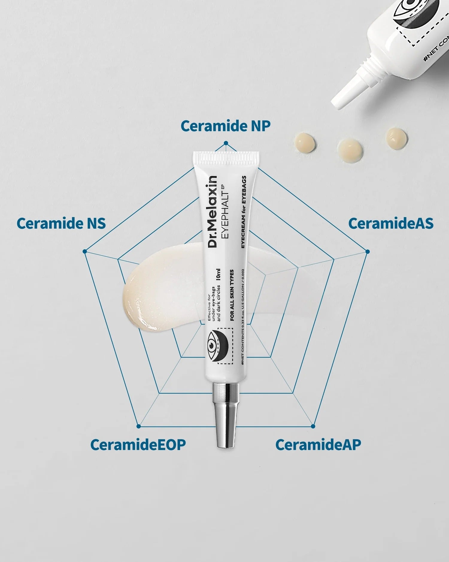 Dr. Melaxin's Eyephalt Eyebag Cream is infused with a sophisticated Ceramide Complex. These ingredients are crucial for strengthening the skin's natural barrier and retaining moisture in the delicate under-eye area, preventing dehydration and minimizing the appearance of fine lines and wrinkles.